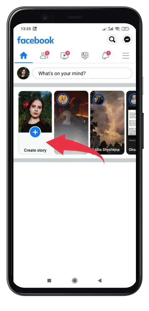 - At the top of your “News Feed,” tap the “Add story” icon.