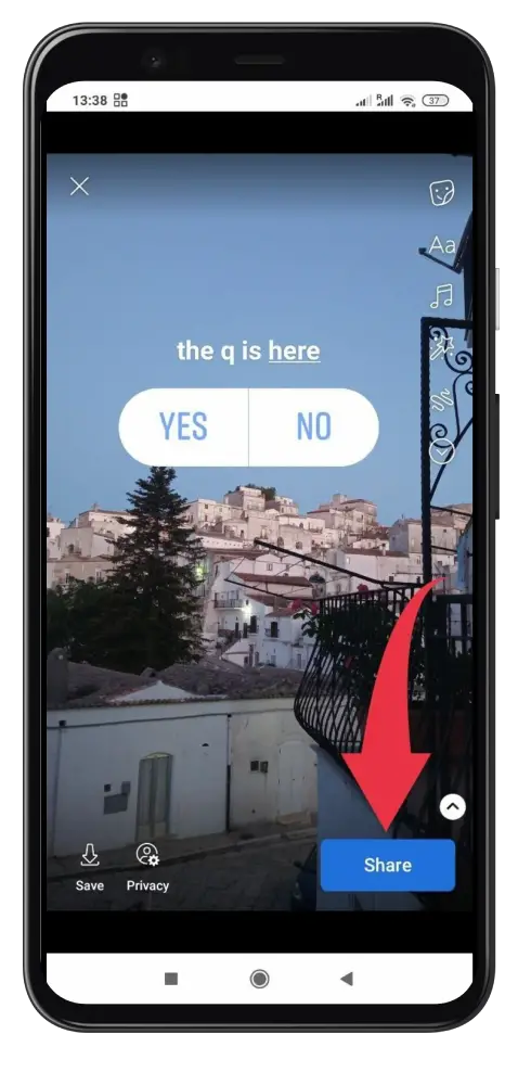 - Once you’re happy with your poll, in the top right tap “Next” then “Share to the story”.