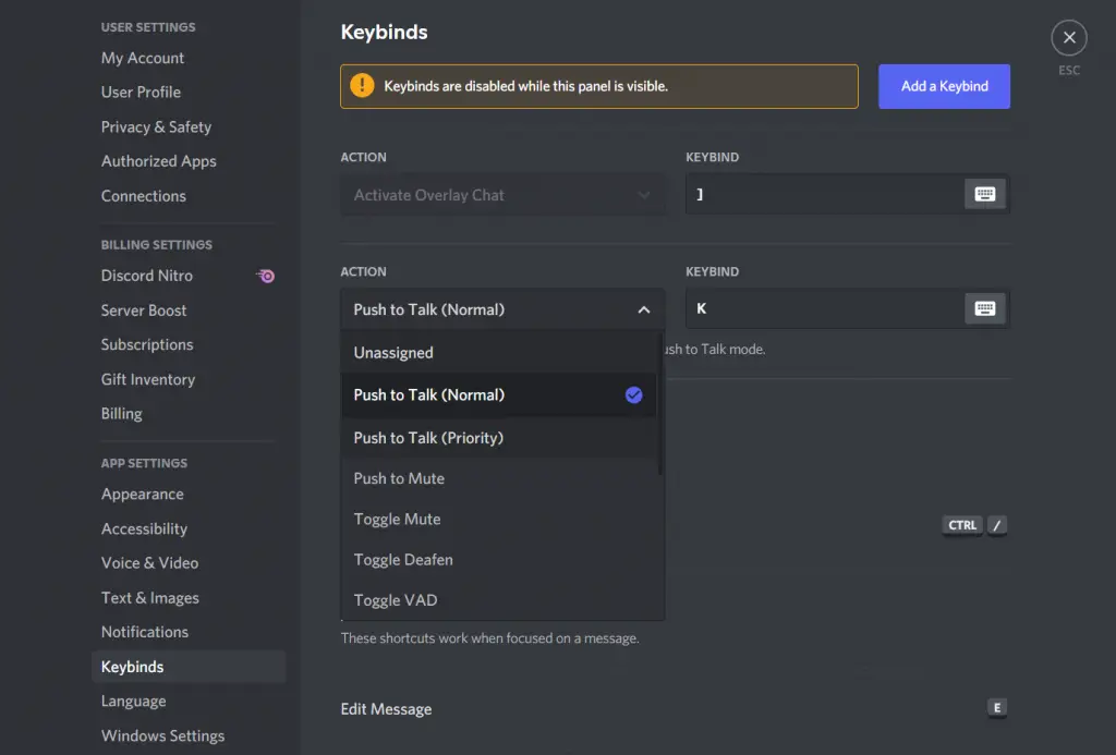 Push to Talk assigns a key as a button that you can use to turn on the microphone. This is nothing new. Most voice and video calling apps have this feature, as does Discord. It’s useful for almost all users since now you can turn off the microphone and not make other Discord users hear what someone next door is saying.
