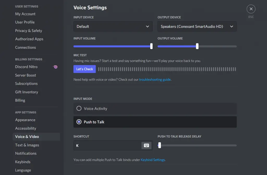 How to enable the Push to Talk option in Discord
