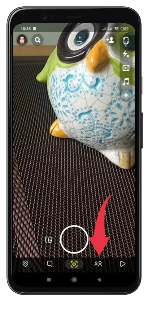 - Open Snapchat, click on the two-person icon at the bottom of your camera screen, and select Add Friends.