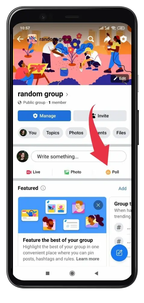 - Tap on “Write something…” then select “Poll.”